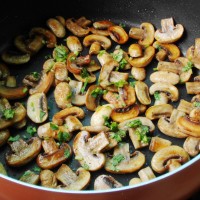 3.锅中加点油烧热,放入蘑菇中火慢煎;油不用很多~~